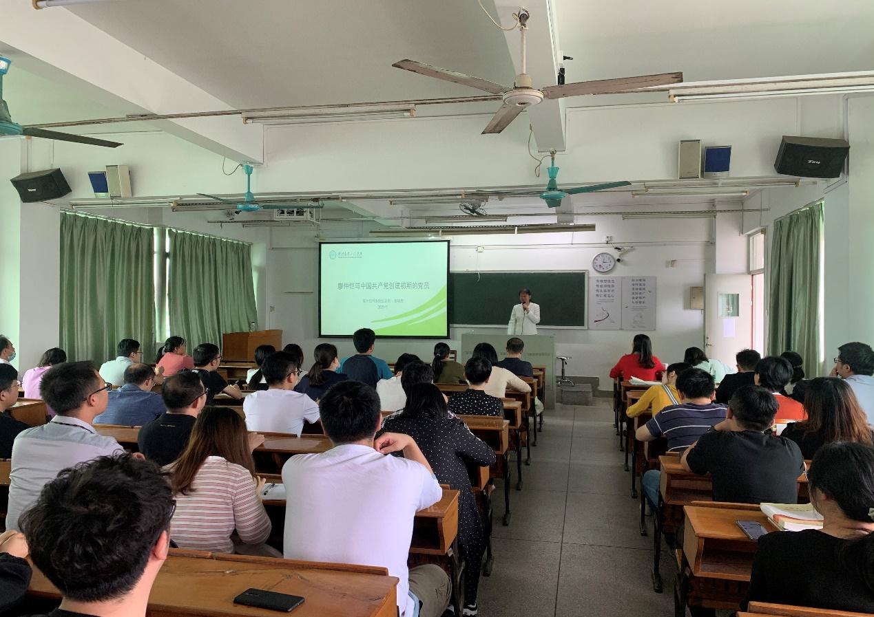 4月29日下午,国产激情在线在教学楼809组织开展学习党史专题宣讲会,邀请廖仲恺何香凝纪念馆馆长蔡瑞燕作题为“廖仲恺与中国共产党创建初期的党员”学习辅导报告。国产激情在线全体教工及研究生参加会议,会议由党总支书记欧坚泉主持。