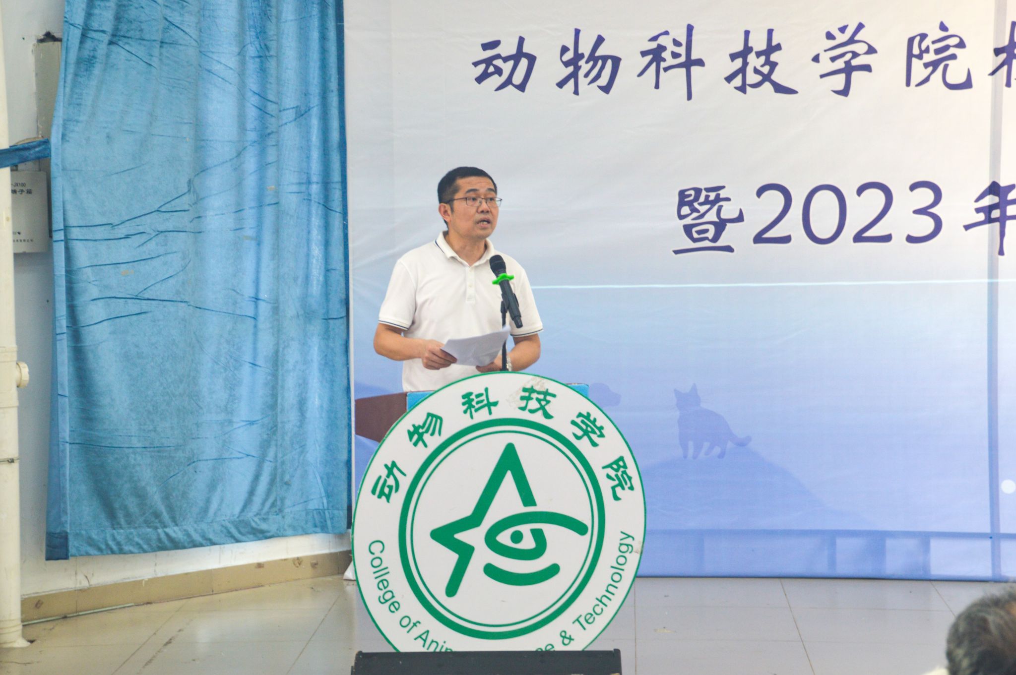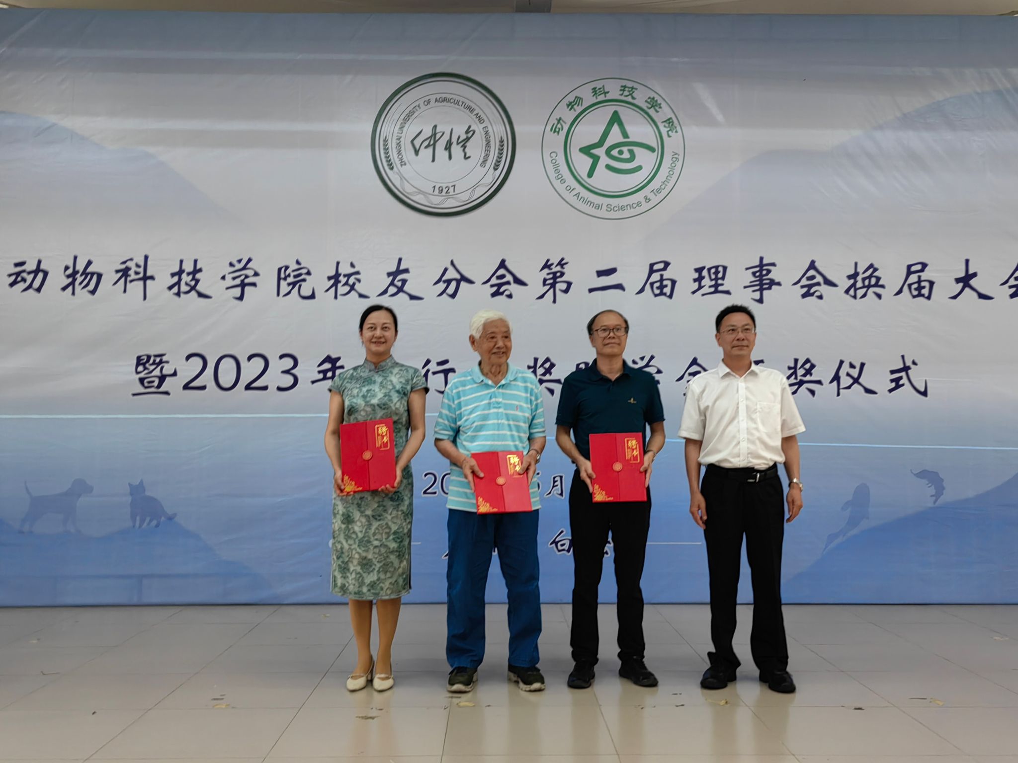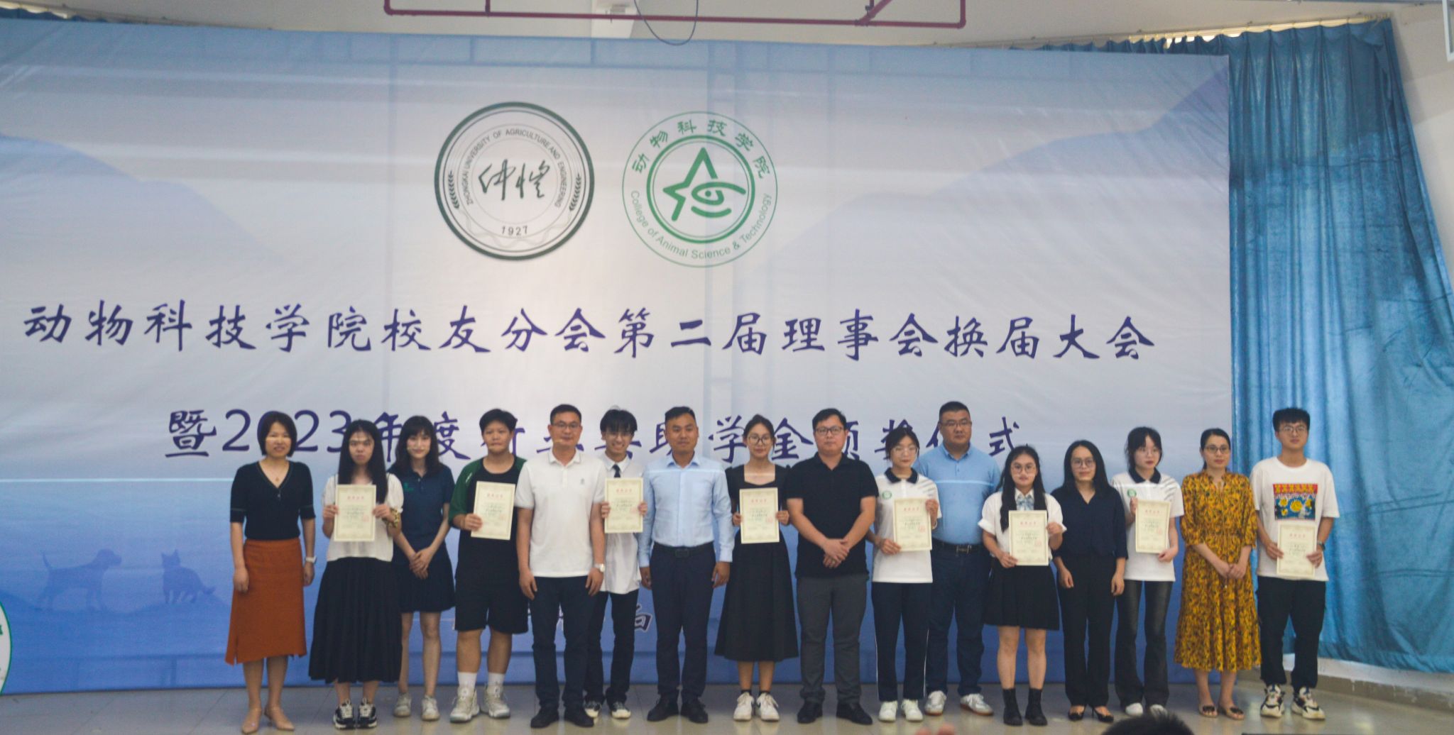 5月20日下午,国产激情在线在白云校区D1小礼堂召开校友分会第二届理事会换届大会暨2023年度行业奖助学金颁奖仪式。学校党委常委、副校长田允波,党委常委、宣传统战部部长、校友事务部部长曾献尼部长以及学生工作部部长沈洁出席活动,学院领导班子、校友代表、原畜牧兽医系和国产激情在线教师代表、行业奖助学金捐赠企业代表等100 多人参加了活动。大会由学院党委副书记李昌辉主持。