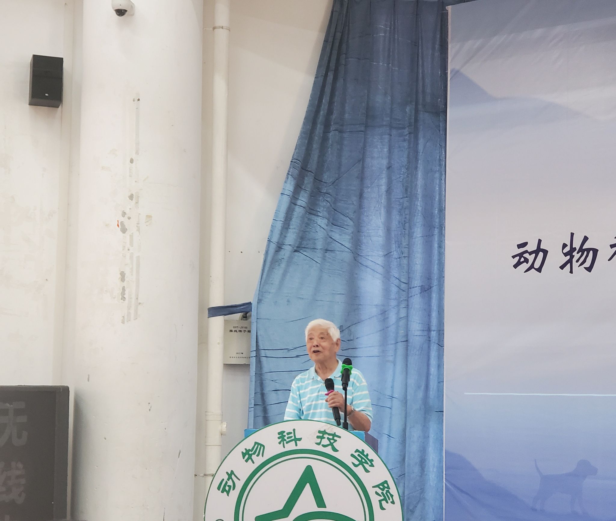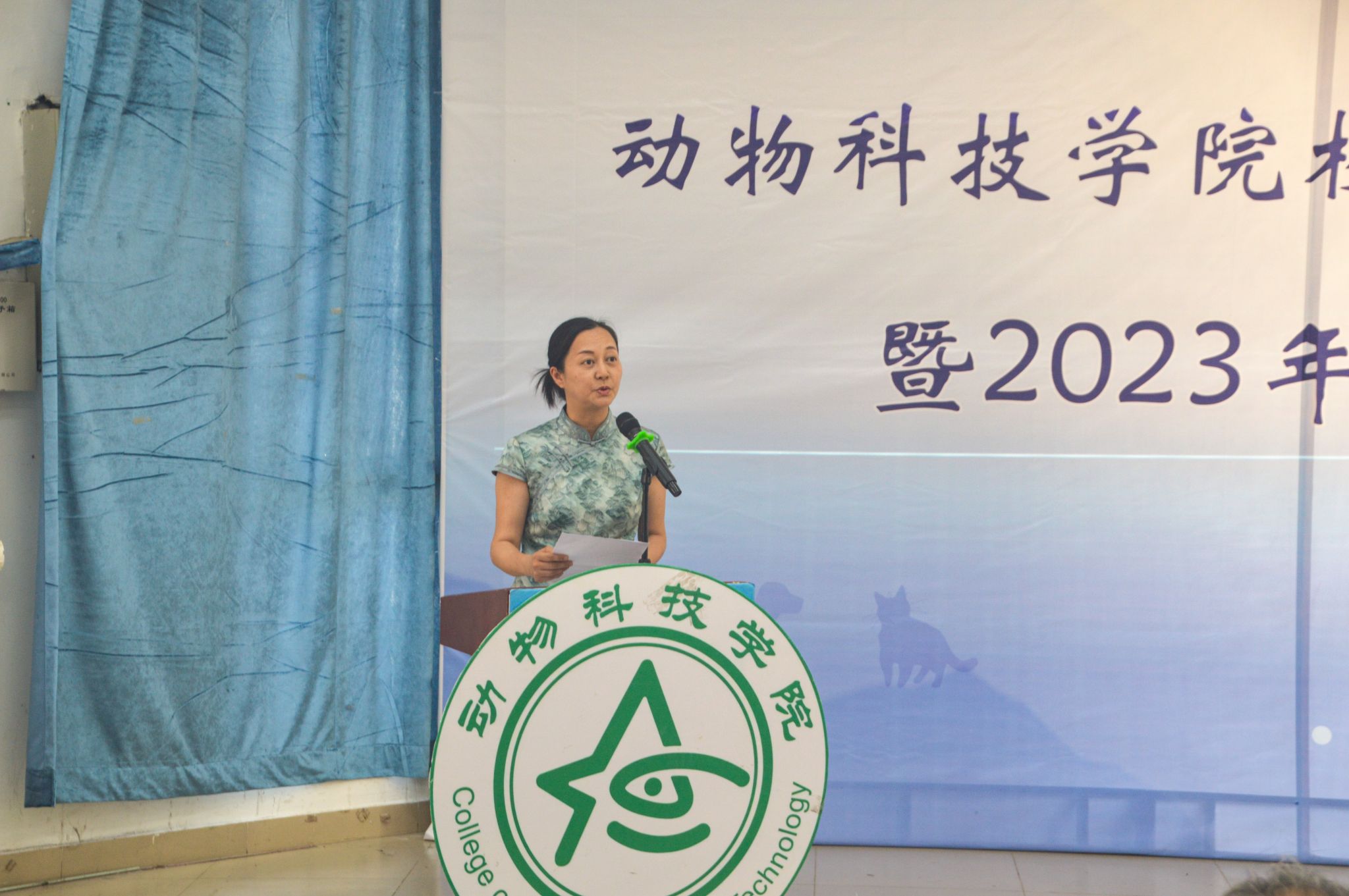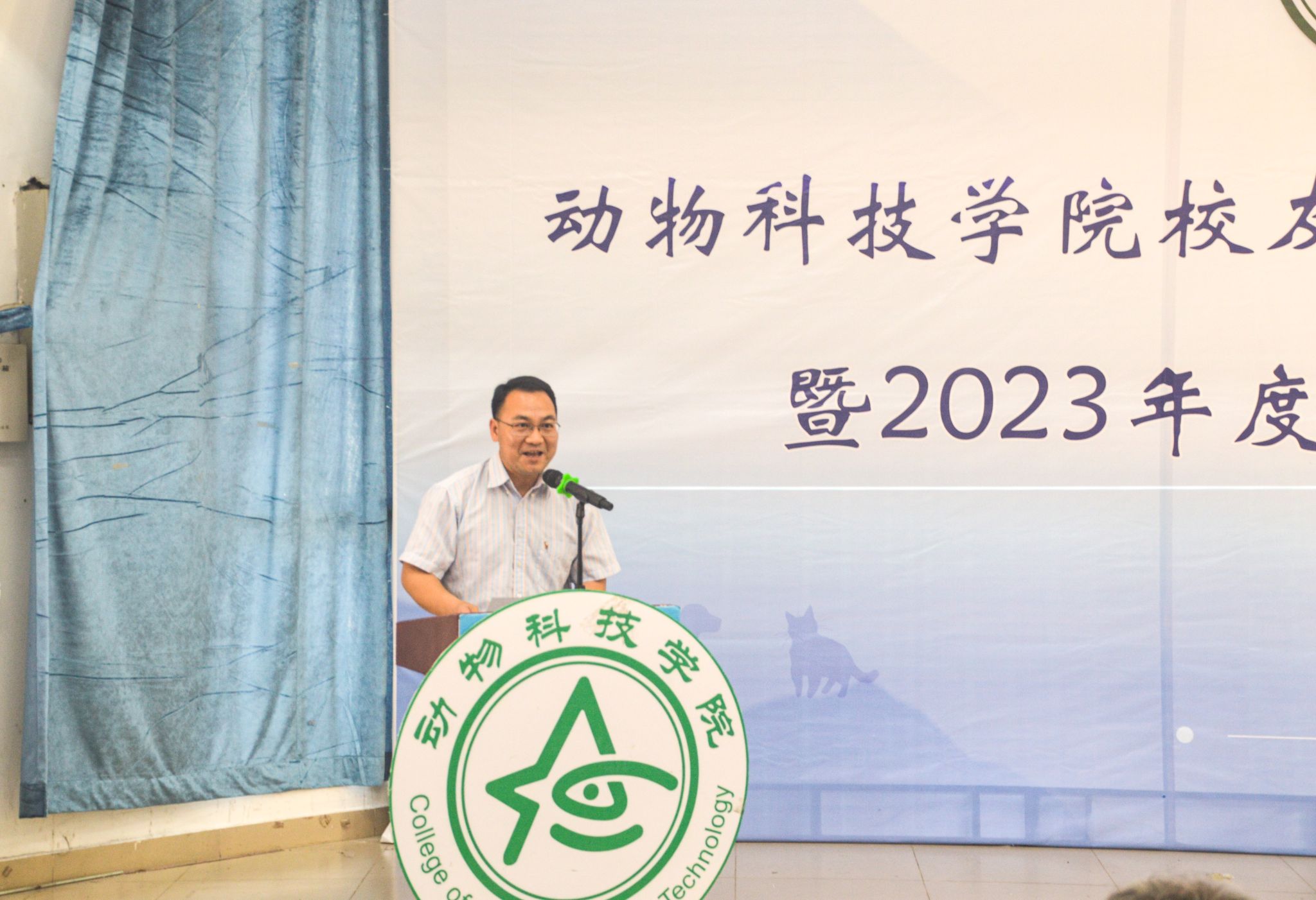 兽医科毕业70年老校友、原畜牧兽医专业主任陈丰泰作为教师代表发言。他回忆起畜牧兽医系的发展历史、教学科研成果和人才培养特色,指出学院在新的发展阶段要发挥专业优势,积极投身行业和服务地区发展。优秀校友代表、广东宝宁农牧科技有限公司总经理李志鹏在发言中回忆了老师们谆谆教导和母校的支持帮助,愿与学院加深合作、共谋发展。优秀校友代表、学院教师李婉雁对求学时老师们的教诲表示衷心感谢,表示将在今后的教师生涯中传承前辈老师的优秀传统和师德师风,为母校培养出更多的人才。