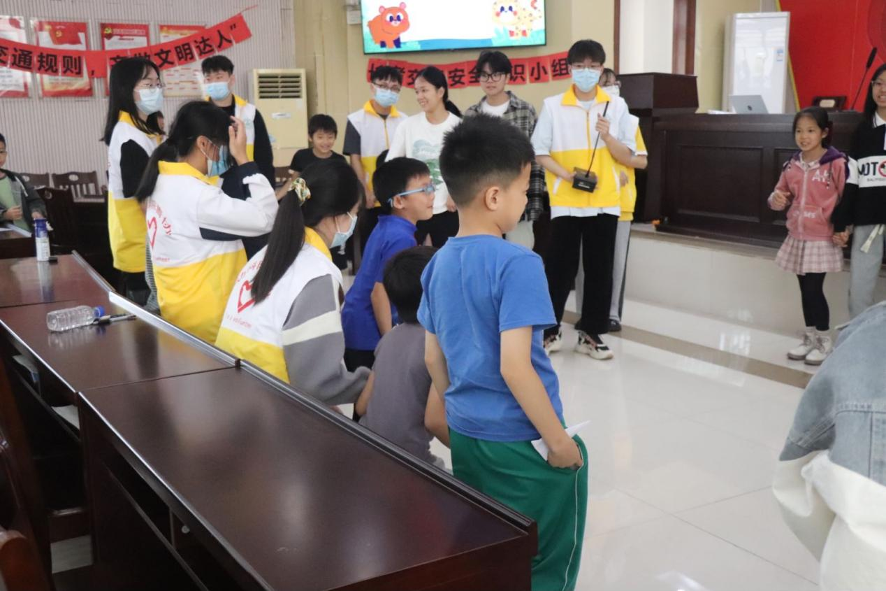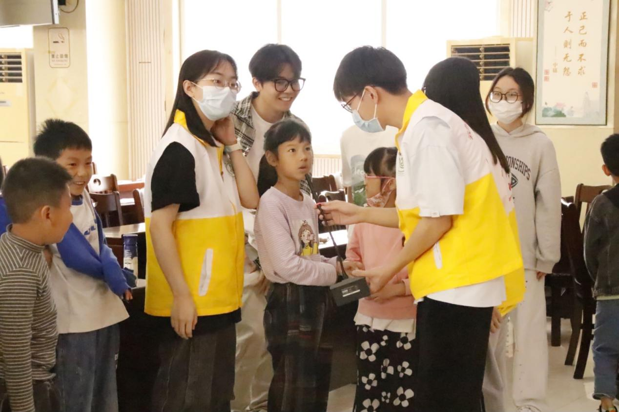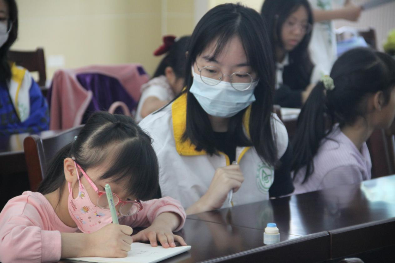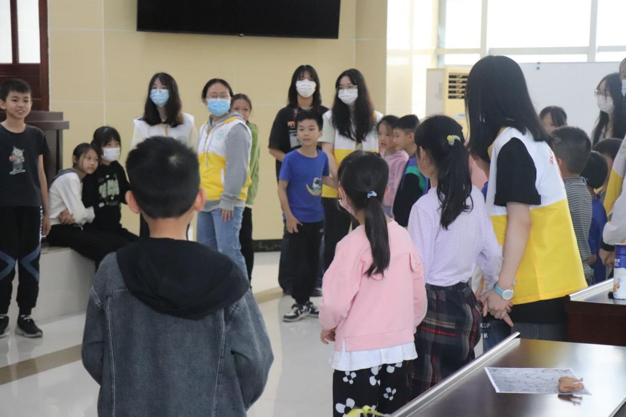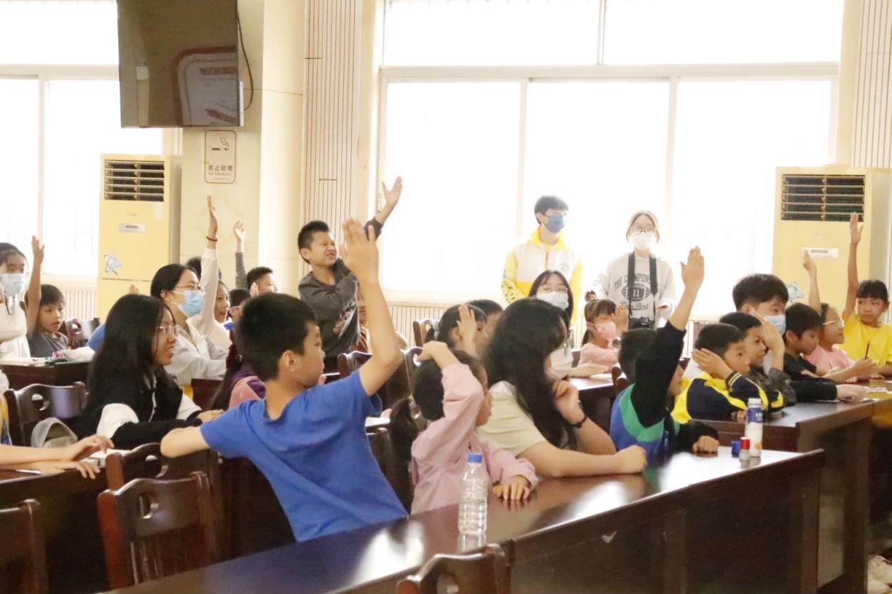作业辅导结束后,特色课堂活动正式展开。水产211班曾宪梓和动医222连晓婷作为“老师”为小朋友们上课,带领小朋友们认识小动物,了解小动物们的习性。期间,小朋友们积极回应老师提出的问题,十分活跃,课堂氛围良好。