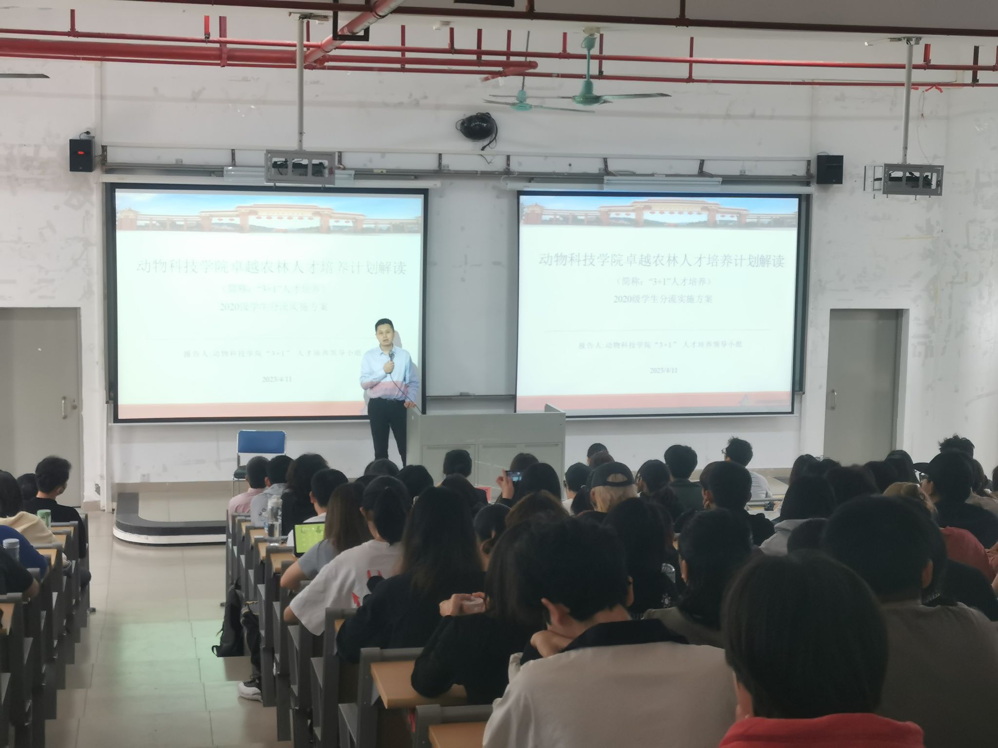 为进一步提高人才培养针对性,分类培育“理论扎实+实践扎实”的知农爱农新型人才,4月11日下午,国产激情在线在白云校区D2礼堂召开2020级“3+1”卓越农林人才联合培养动员大会,国产激情在线党委书记朱路平、副书记李昌辉、副院长刘文俊及相关老师出席会议。