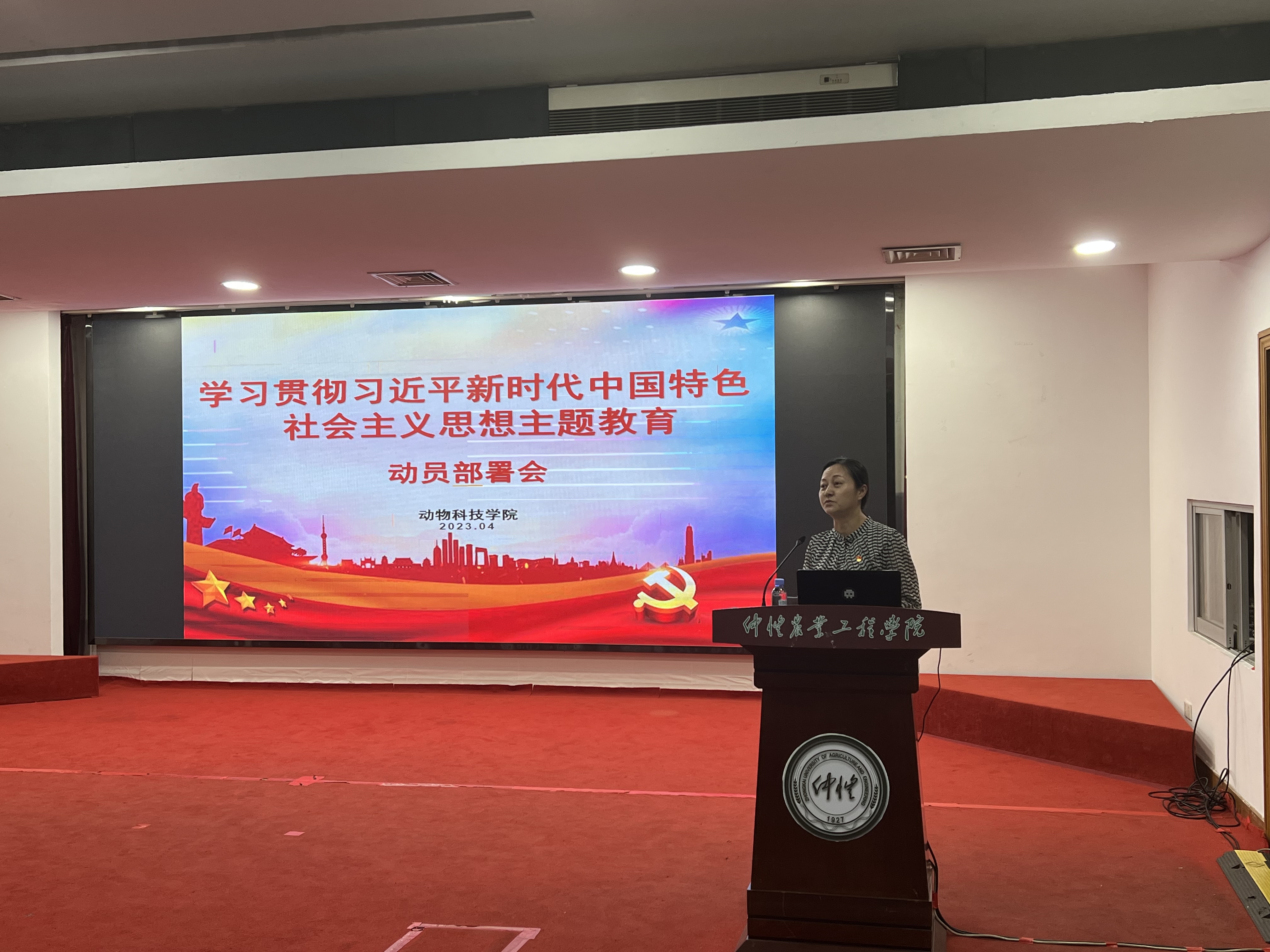 4月21日下午,国产激情在线党委组织全体党员在学术报告厅召开学习贯彻习近平新时代中国特色社会主义思想主题教育动员部署会。会议由党委书记朱路平主持,并作动员讲话。