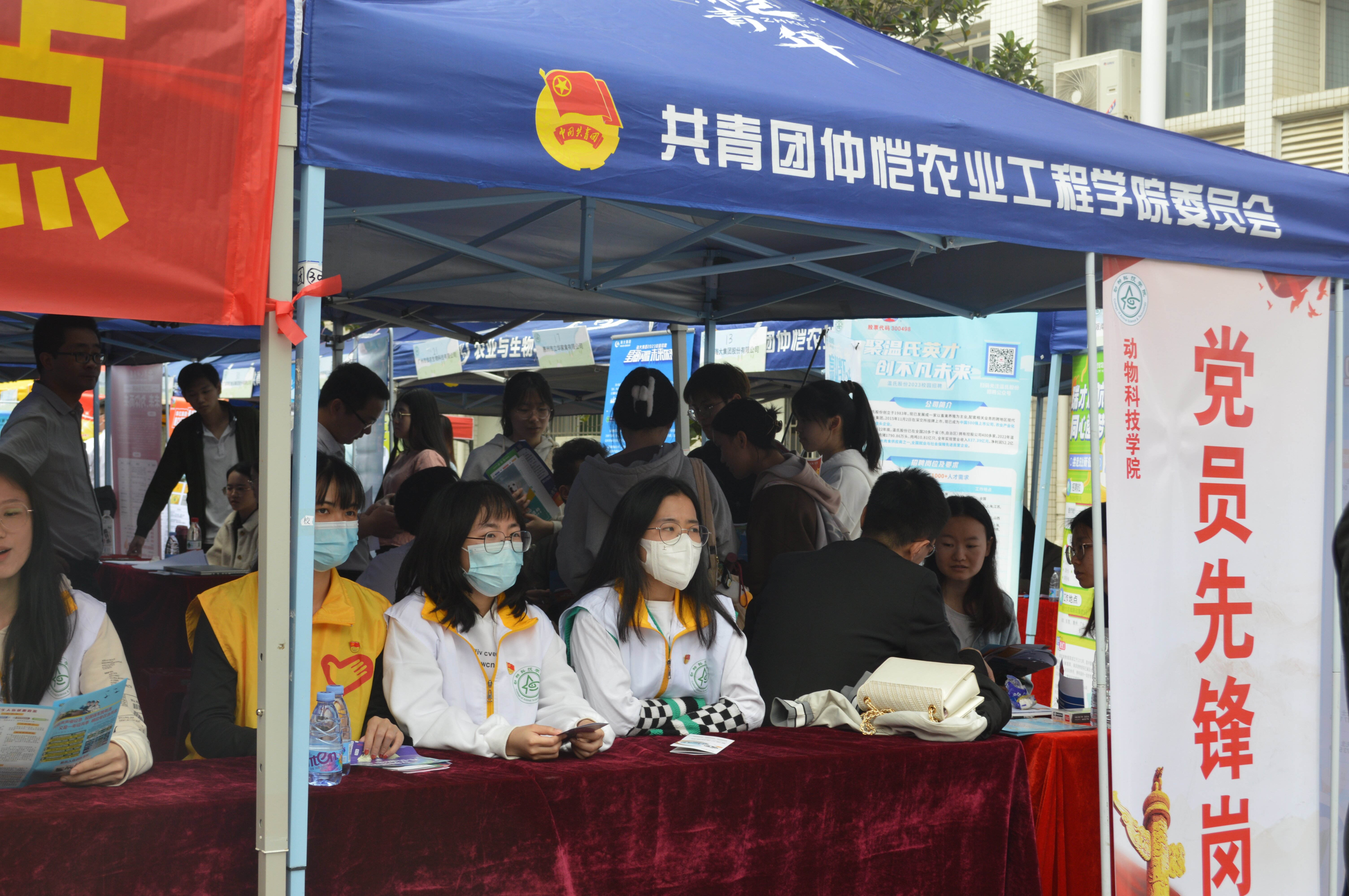 招聘会现场设置了企业接待处、党员志愿服务站、征兵宣传点、就业创业咨询点和学生签到处等摊位。工作人员热情服务,引导企业及学生有序进行招聘活动。各招聘单位通过海报、宣传册、面对面交流等形式向学生介绍企业概况、发展前景、人员需求、薪资待遇等情况。