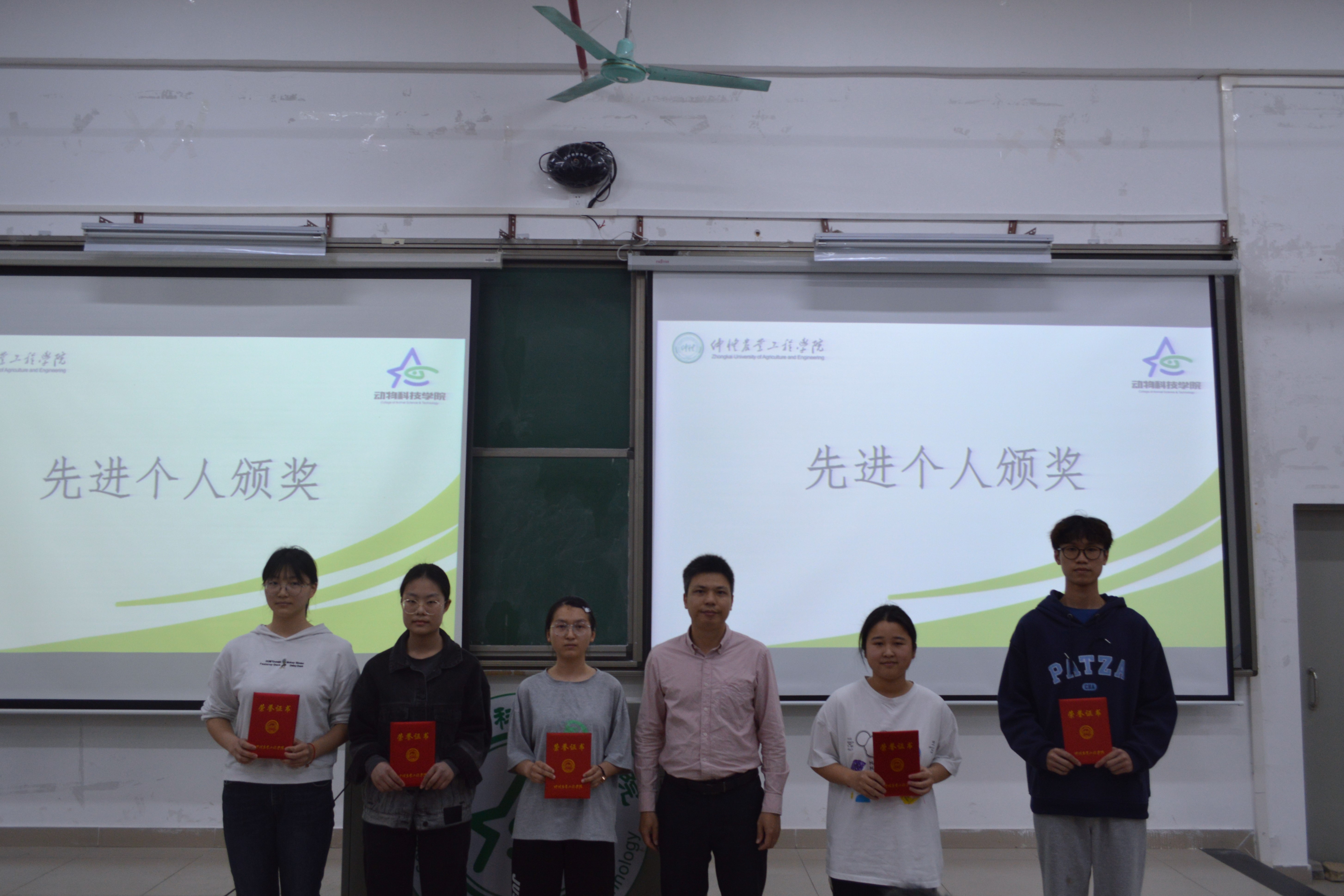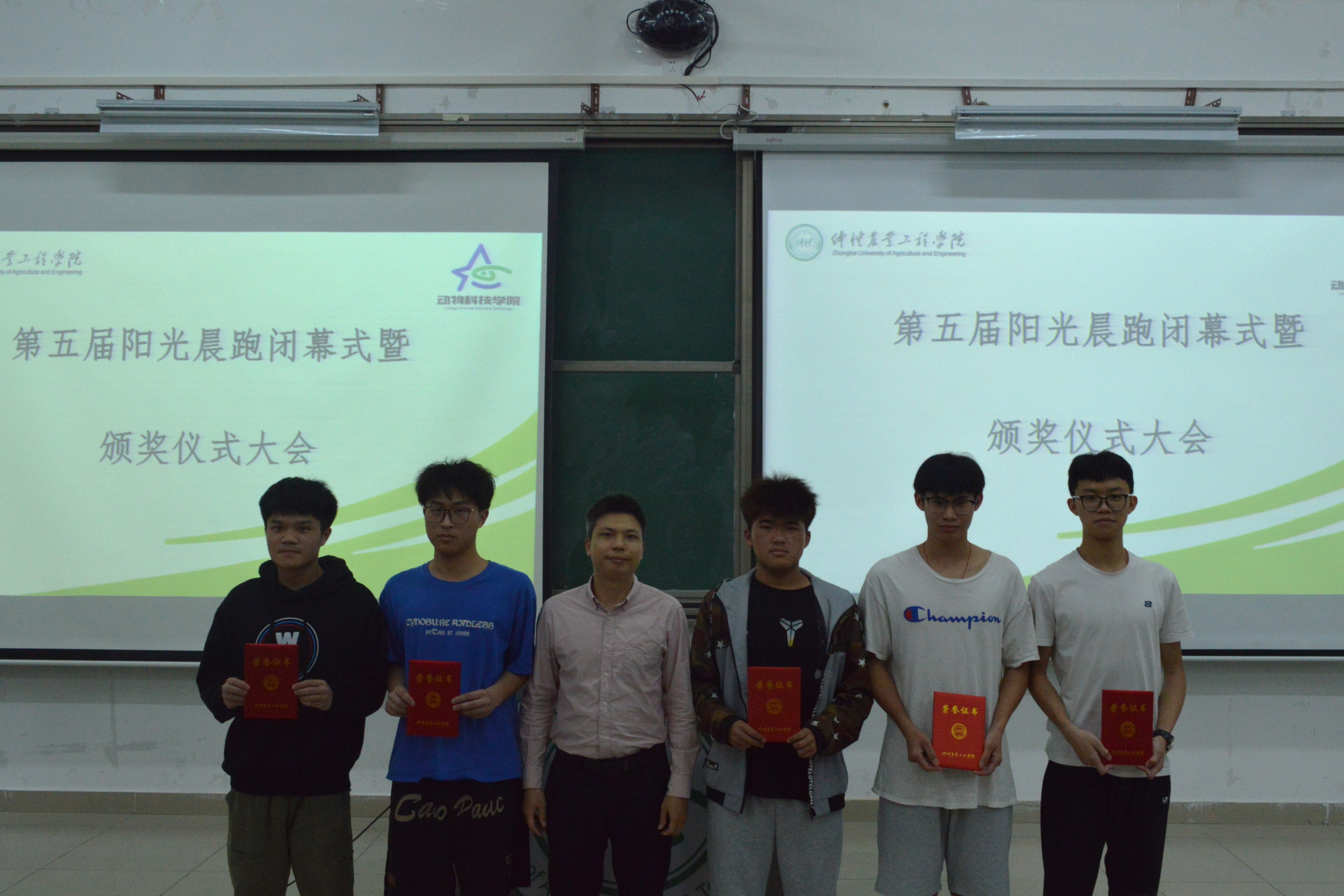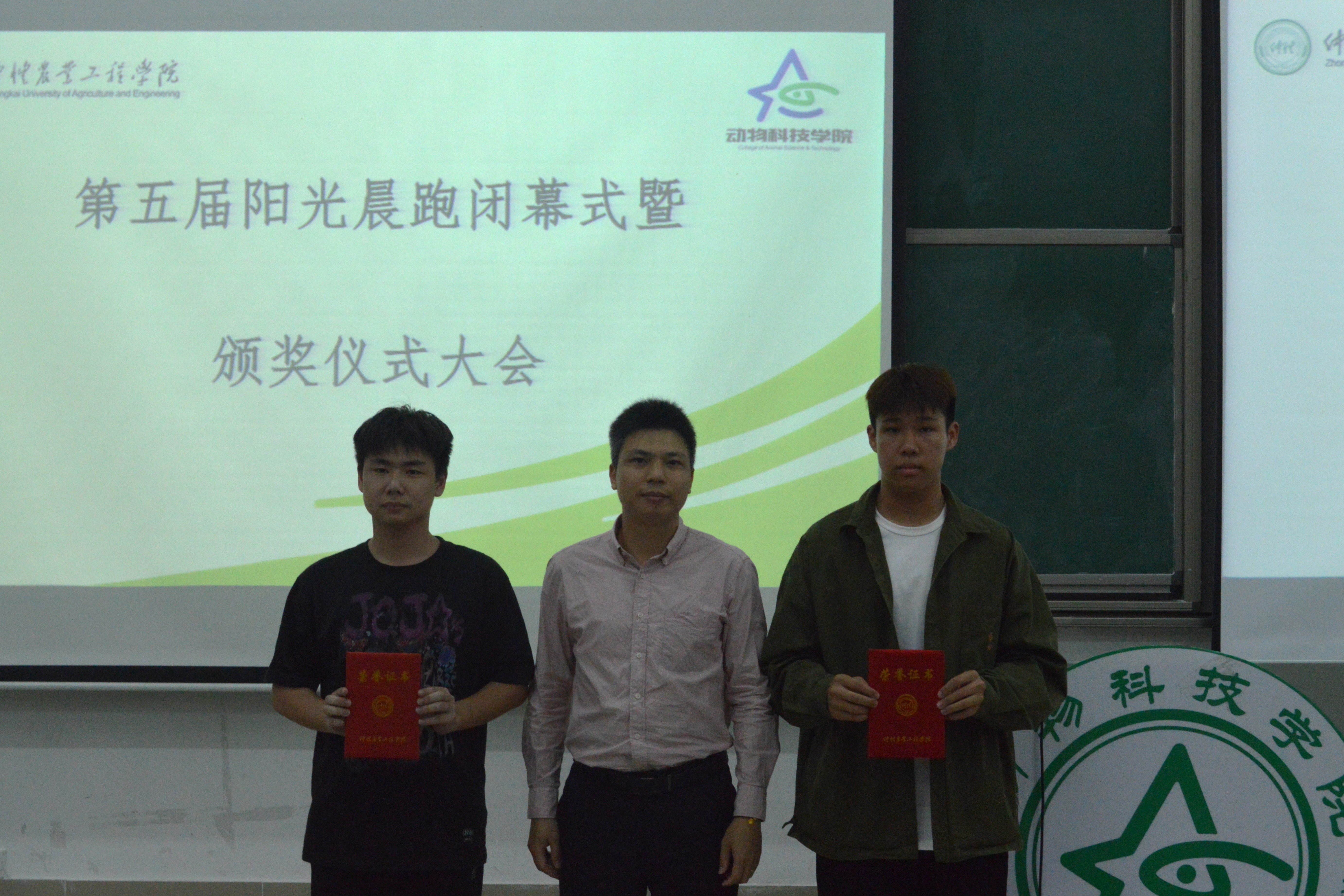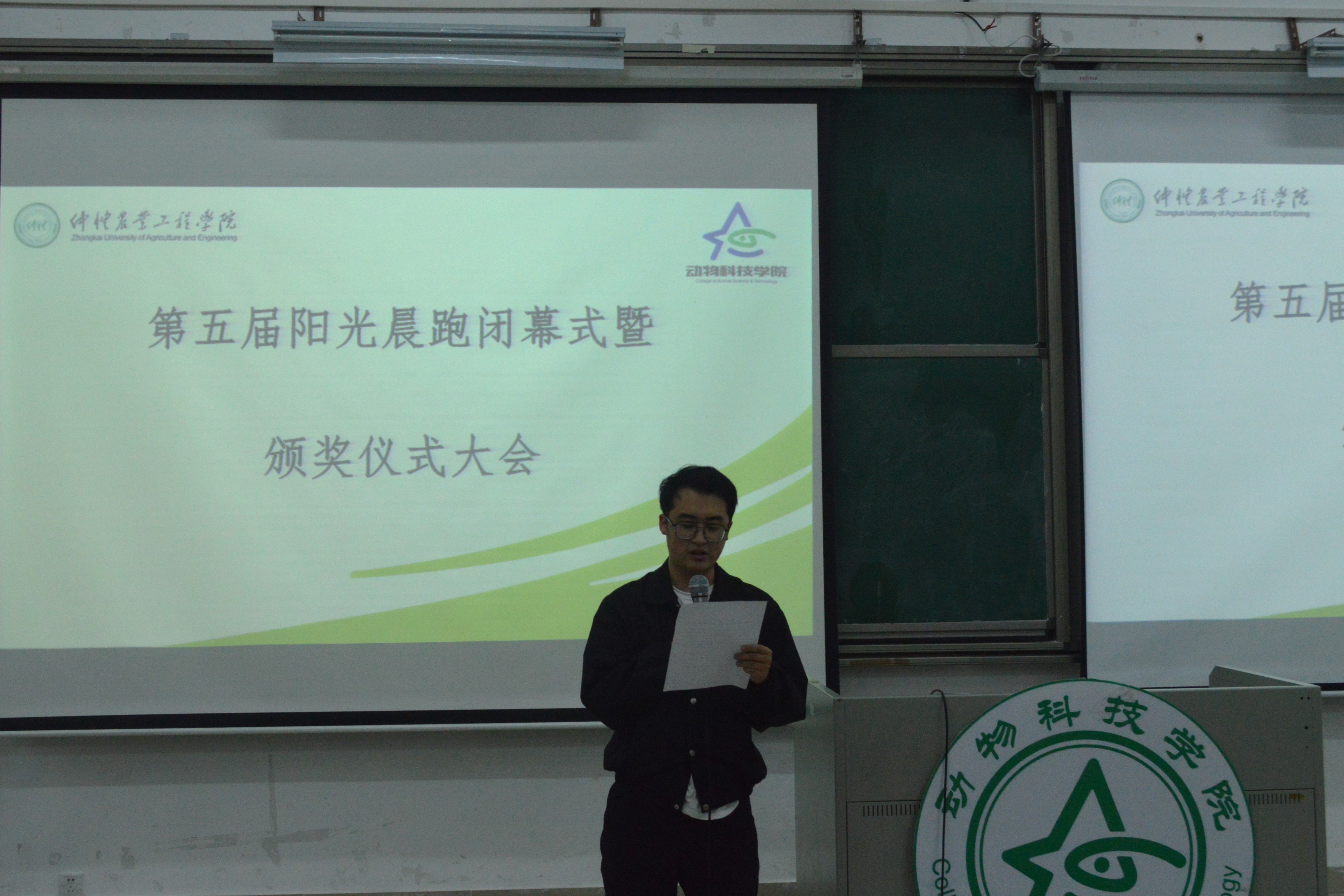 表彰大会上,赵江宣读表彰决定,水医221、动医221班两个班级被评选为阳光晨跑优秀集体,曾培等22名同学被评选为阳光晨跑先进个人。
