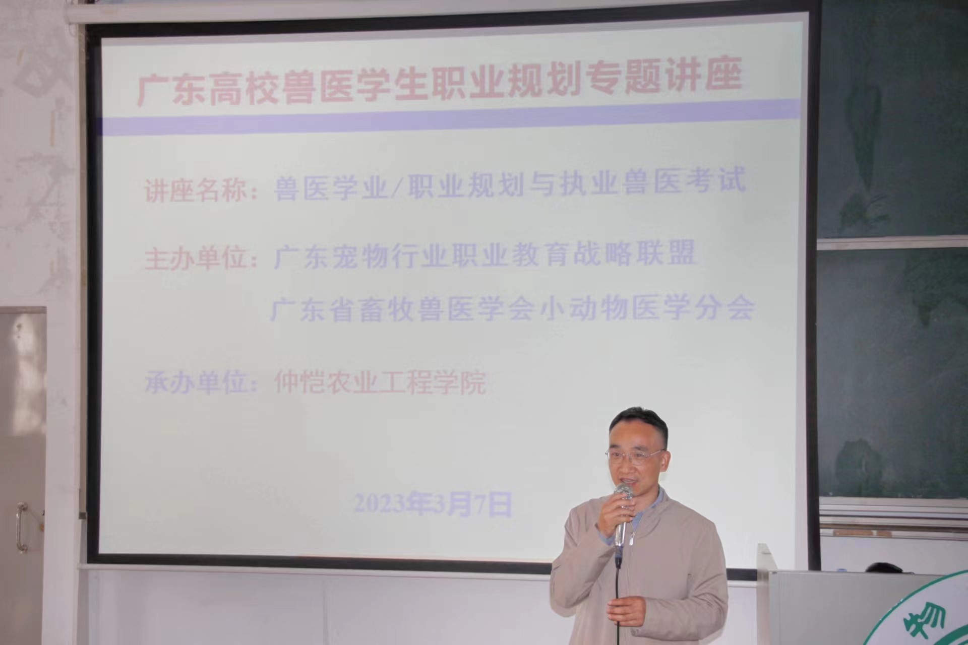3 月 7 日下午,华南农业大学教授、博士生导师、中国畜牧兽医学会小动物医学分会副秘书长、广东省畜牧兽医学会小动物医学分会会长石达友教授及企业代表一行应邀到国产激情在线作兽医学生职业规划与执业兽医考试专题讲座。