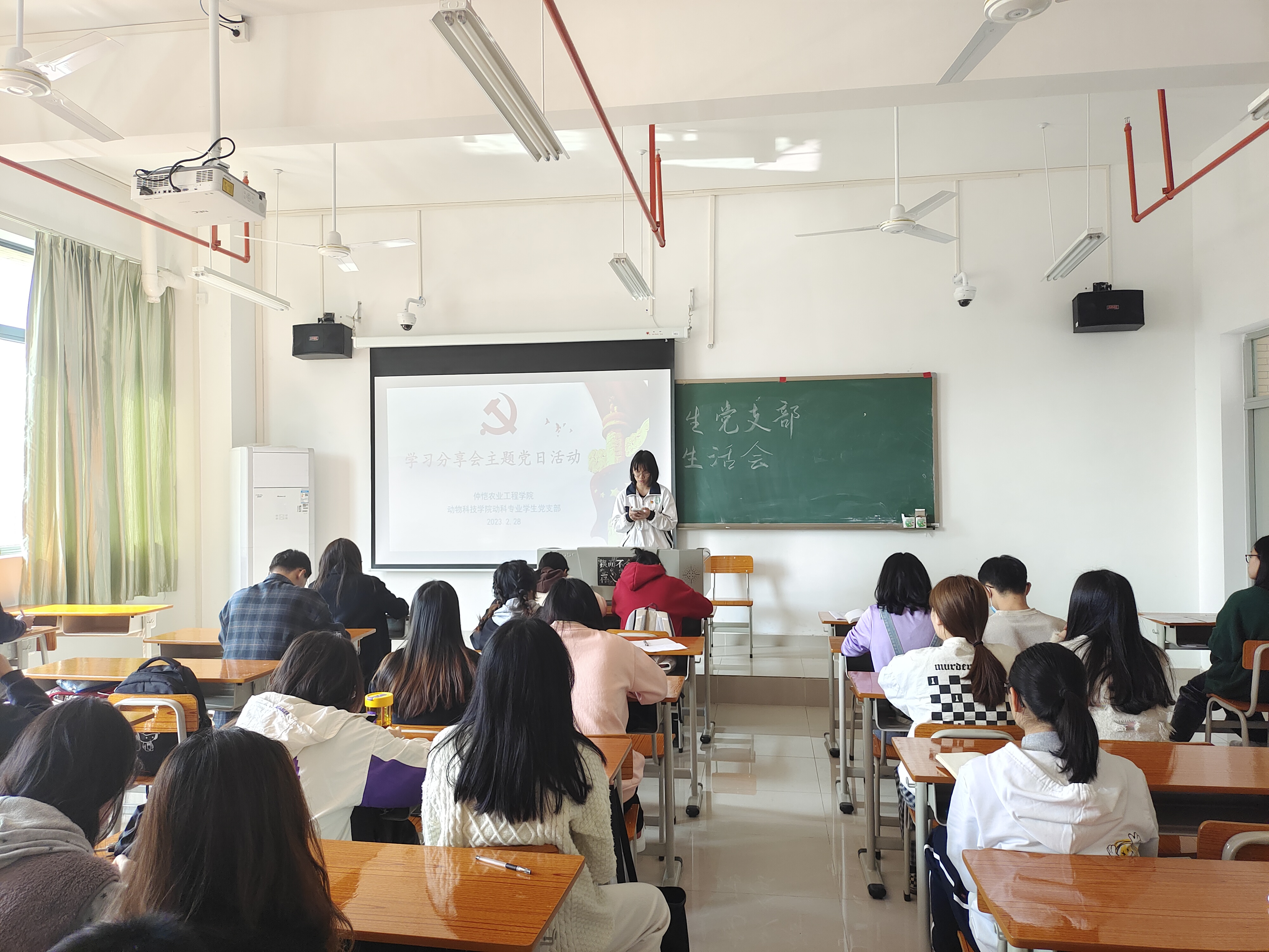 为深入学习宣传贯彻党的二十大精神,2月28日国产激情在线动科专业学生党支部于生科楼B209开展主题党日活动学习分享会。会议由动科专业学生党支部书记许鸿主持,动科专业学生党支部全体党员参加。