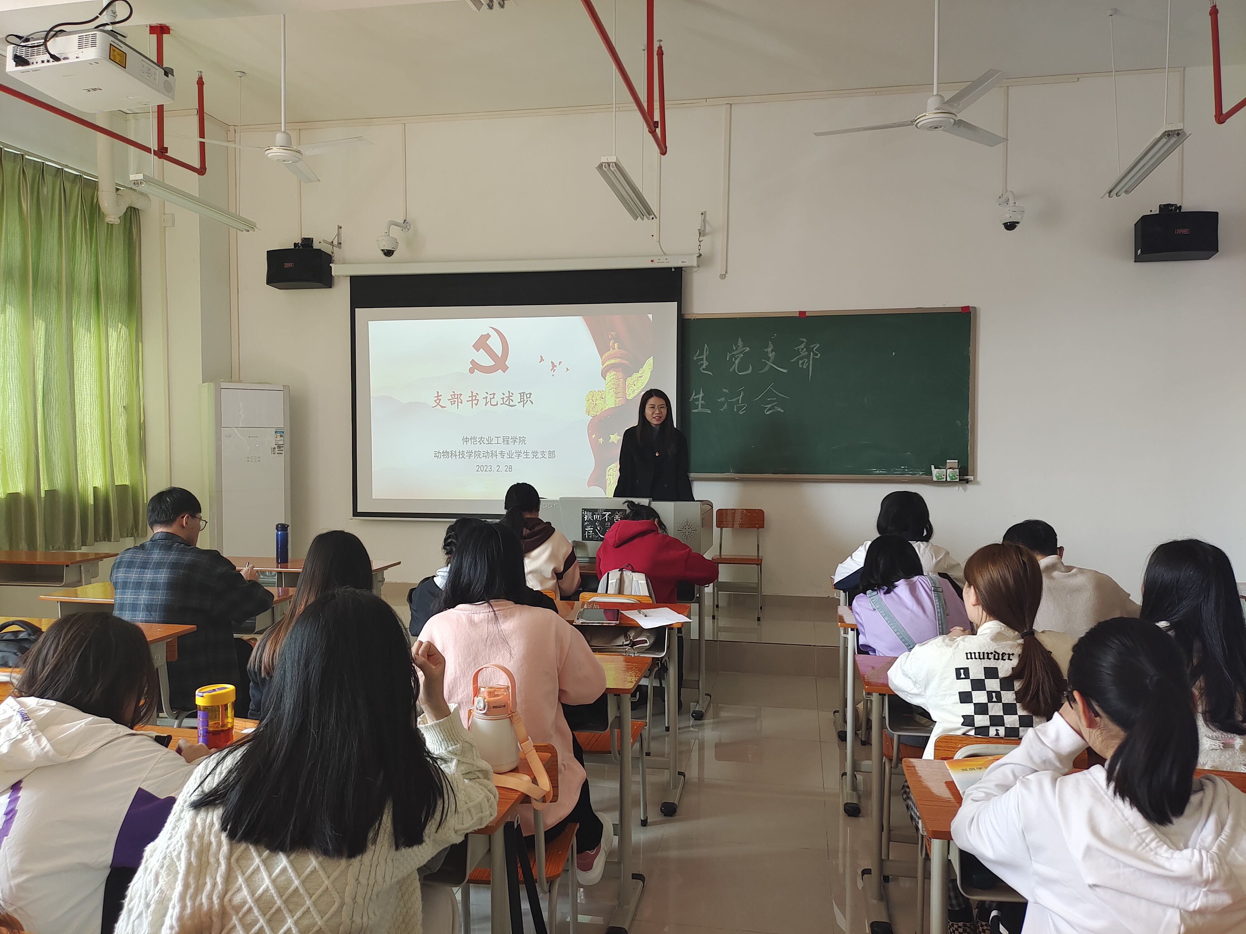 为深入学习贯彻党的二十大精神,2月28日,国产激情在线动科专业学生党支部于生科楼B209开展“加强责任担当,发挥党员先锋模范带头作用”主题党课,由动科专业学生党支部书记许鸿主讲,动科专业学生党支部全体党员参加。