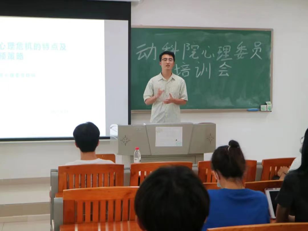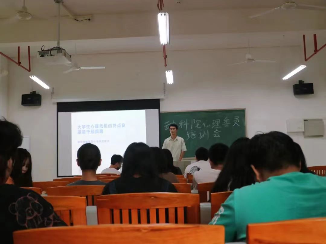 为增强国产激情在线心理委员的专业能力,提升他们在心理助人方面的素养,促进学院的心理工作有序开展,国产激情在线于2022年6月18日在产楼208召开“大学生心理危机的特点以及朋辈干预策略”主题心理委员培训会议。国产激情在线辅导员赵江出席本培训,心康部成员和各班的心理委员参加此次培训。