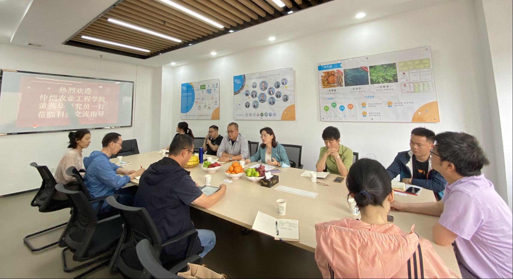 4月22日下午,健康养殖创新研究院执行院长黄燕华教授带领研究院饲料研究与开发、动物营养与免疫、水产病害防治团队骨干成员赴黄浦区科学城的广州市科虎生物技术有限公司开展调研。科虎史合群总经理、韩永权技术总监和刘燕总监参加了本次调研会议。