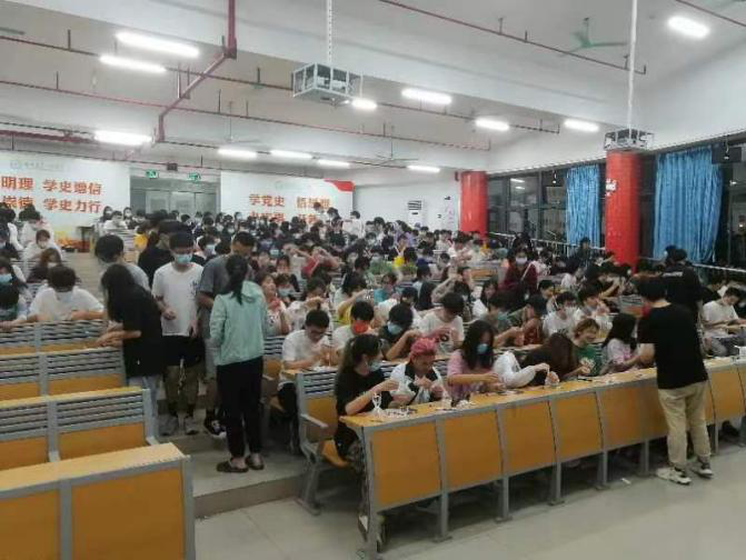 20: 42学院下发紧急通知,要求全院学生到D栋小礼堂前集合,开展核酸抗原自测的相关培训,学院相关老师、党员和全体在校生迅速响应号召,学生党支部成员抵达现场后,维持秩序,组织各班级有序列队,于21:20高效集合完毕。
