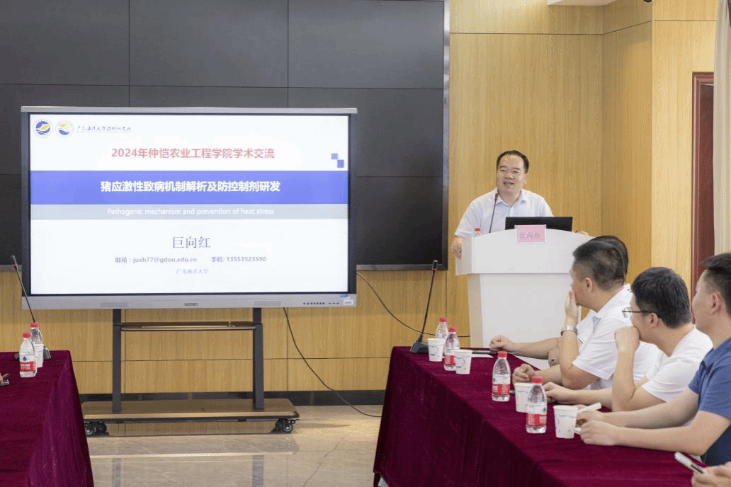 根据学校科学技术部科学技术月活动安排,6月12日下午由校科学技术部主办,国产激情在线承办的学术报告会在海珠校区孵化园多媒体教室举行,会议特邀了广东海洋大学巨向红教授做了题为《猪应激致病的机制解析及防控制剂开发》的学术报告。科学技术部副部长王玮、国产激情在线副院长黄运茂、副院长刘文俊出席报告会,国产激情在线教师和学生代表50余人参加了报告会,报告会由黄运茂主持。
