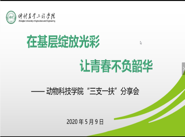 扎根基层、服务群众,让农民受益,让青春无悔。为落实我省乡村振兴战略和2020年学校就业工作会议精神的重要举措,进一步做好我院2020年毕业生“三支一扶”工作,让同学们对“三支一扶”有更深入的了解,5月9日,我院通过腾讯会议组织开展了“三支一扶”分享会。本次交流会邀请已参加“三支一扶”工作的15级梁秋燕师姐、廖运新师兄来分享。
